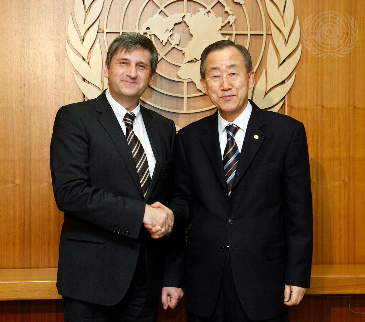 Secretary-General Ban Ki-moon (right) meets Michael Spindelegger, Austria's Federal Minister for European and International Affairs.