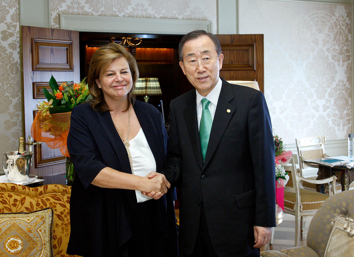 Secretary-General Ban Ki-moon (right) meets Louka Katseli, Greece's Minister of Economy, Competitiveness and Shipping.