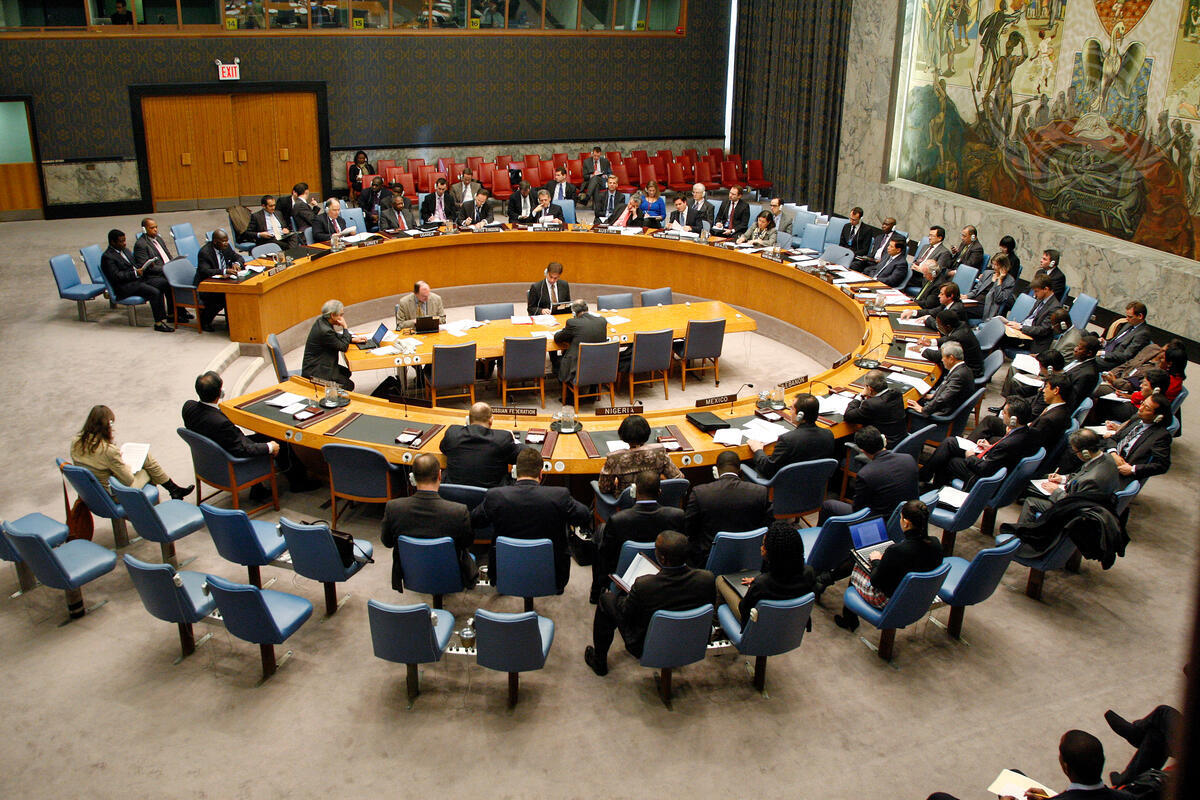 A wide view of the Security Council's meeting on the situation in Côte d'Ivoire. During deliberations the Council considered a progress report from the Secretary-General on the United Nations Operation in Côte d'Ivoire (UNOCI).