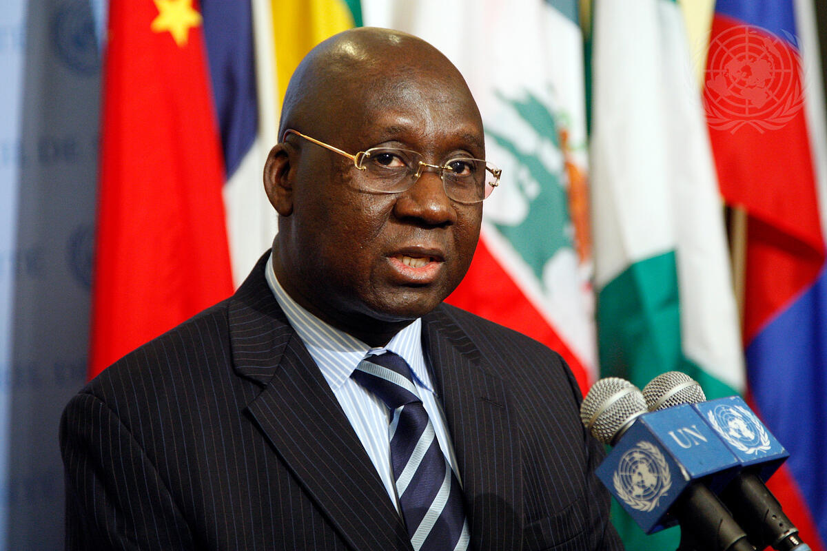 Ilahiri A. Djédjé, Permanent Representative of Côte d'Ivoire to the United Nations, speaks to reporters following a Security Council meeting on his country. Mr. Djédjé addressed Côte d'Ivoire's upcoming elections, whose date is yet to be determined.