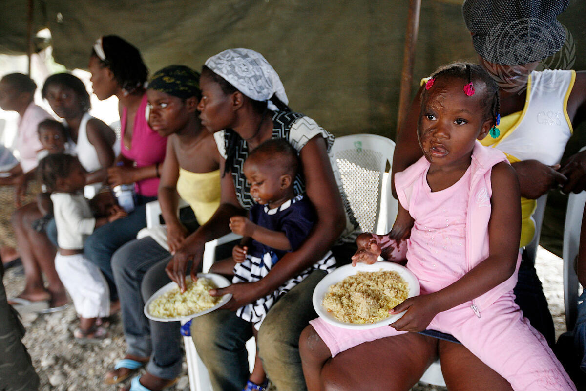 A spontaneous hospital, established in the aftermath of Haiti's earthquake by the Jordanian Battalion of the United Nations Stabilization Mission in Haiti (MINUSTAH), feeds children in need and provides medical treatment for earthquake victims.