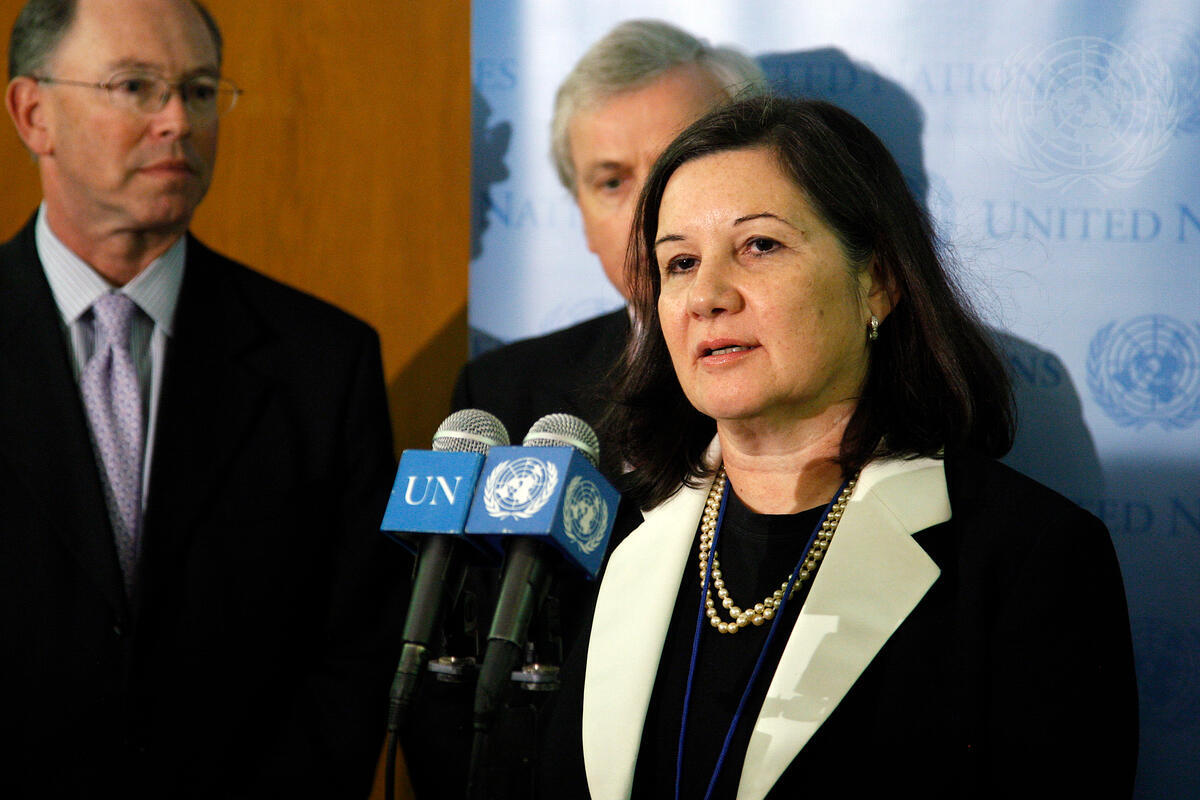 Maria Luiza Ribeiro Viotti, Permanent Representative of Brazil to the United Nations, briefs reporters on her country's relief efforts in Haiti. Brazil maintains a large contingent of peacekeepers with the United Nations Stabilization Mission in Haiti (MINUSTAH).