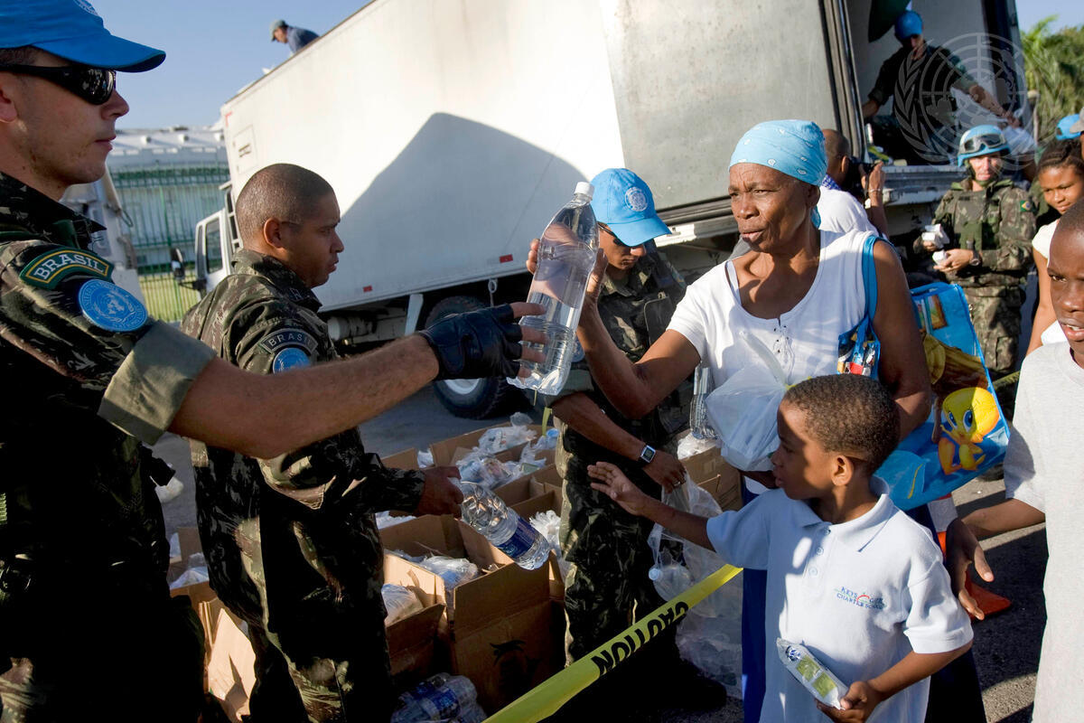 UN Peacekeepers Distribute Water and Food in Haiti