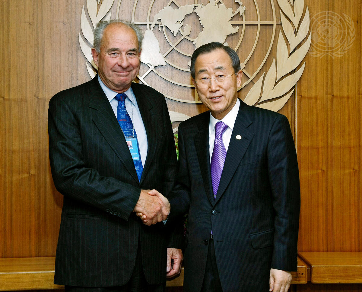 Secretary-General Ban Ki-moon (right) meets with Don McKinnon, former Secretary-General of the Commonwealth.