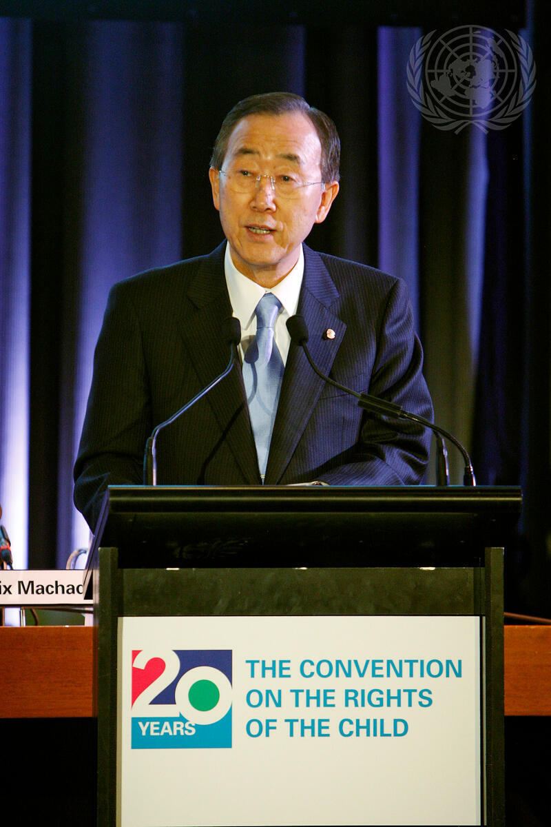 Secretary-General Ban Ki-moon speaks at the United Nations Children's Fund (UNICEF)'s 20th Anniversary Commemoration of the Convention on the Rights of the Child.