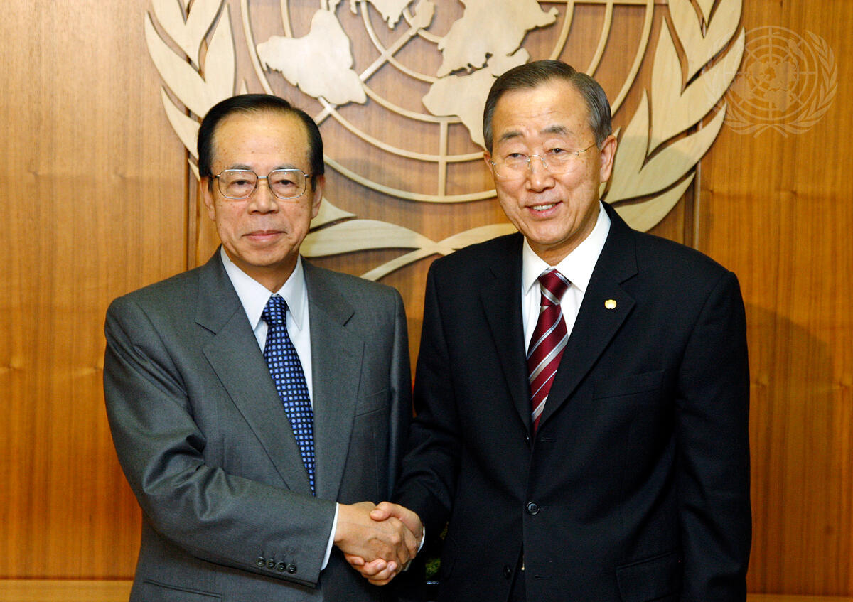 Secretary-General Ban Ki-moon (right) meets with Yasuo Fukuda, former Prime Minister of Japan.