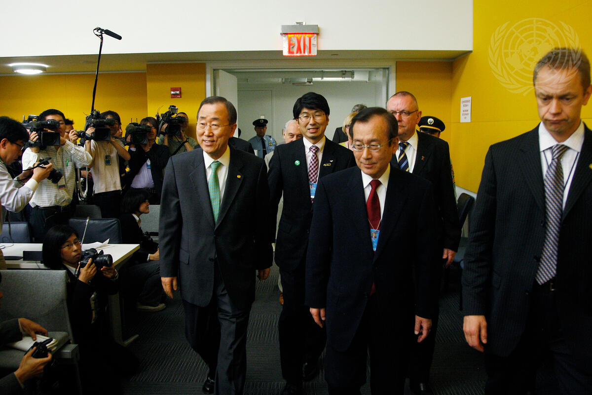 United Nations Secretary-General Ban Ki-moon (left) with mayors attending the Second Conference of Mayors for Peace event.
