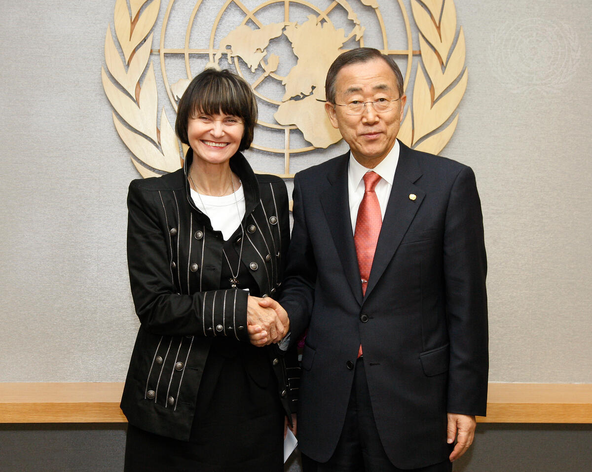 United Nations Secretary-General Ban Ki-moon (right) meets with Micheline Calmy-Rey, Minister for Foreign Affairs of Switzerland.