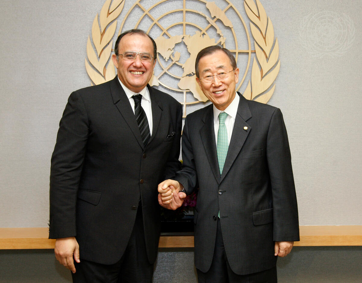 United Nations Secretary-General Ban Ki-moon (right) meets with Fassi Fihri, Foreign Minister of Morocco.