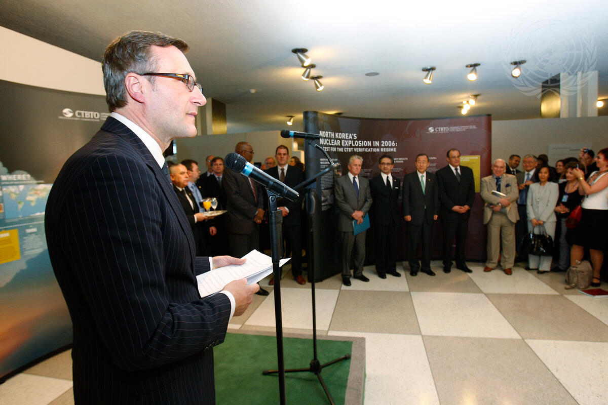 Tibor Toth, Executive Secretary of the Preparatory Commission for the Comprehensive Nuclear-Test-Ban Treaty Organization (CTBTO), speaks at the Exhibition ""Putting an End to Nuclear Explosions"", organized by the CTBTO.