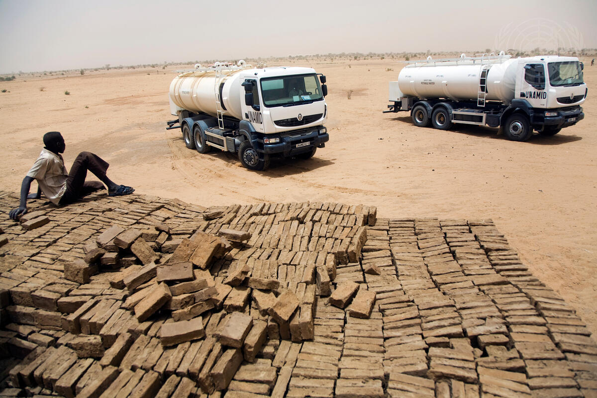 The Disarmament, Demobilization and Reintegration (DDR) Section of the African Union-United Nations Hybrid Operation in Darfur (UNAMID) delivers 40,000 liters of water to Tora village, approximately 50 km north of El Fasher, North Darfur. The water will be used in the construction of a village school which will house 30 former child soldiers.