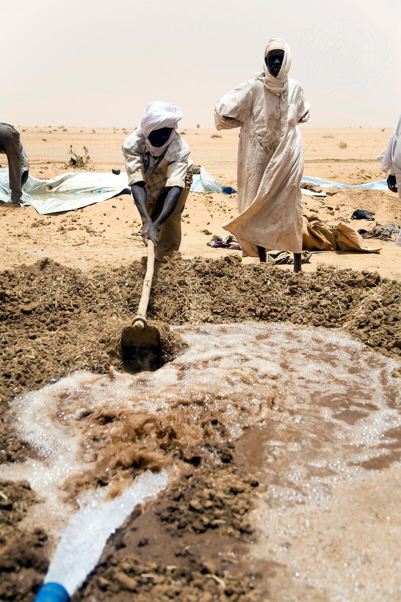 In Tora village, North Darfur, water is used to make bricks for the construction of a school which will house 30 former child soldiers. The water was delivered by the Disarmament, Demobilization and Reintegration (DDR) Section of the African Union-United Nations Hybrid Operation in Darfur (UNAMID).