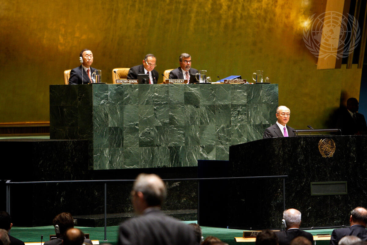 Medium wide shot of the 2010 Review Conference of the Parties to the Treaty on the Non-Proliferation of Nuclear Weapons (NPT).