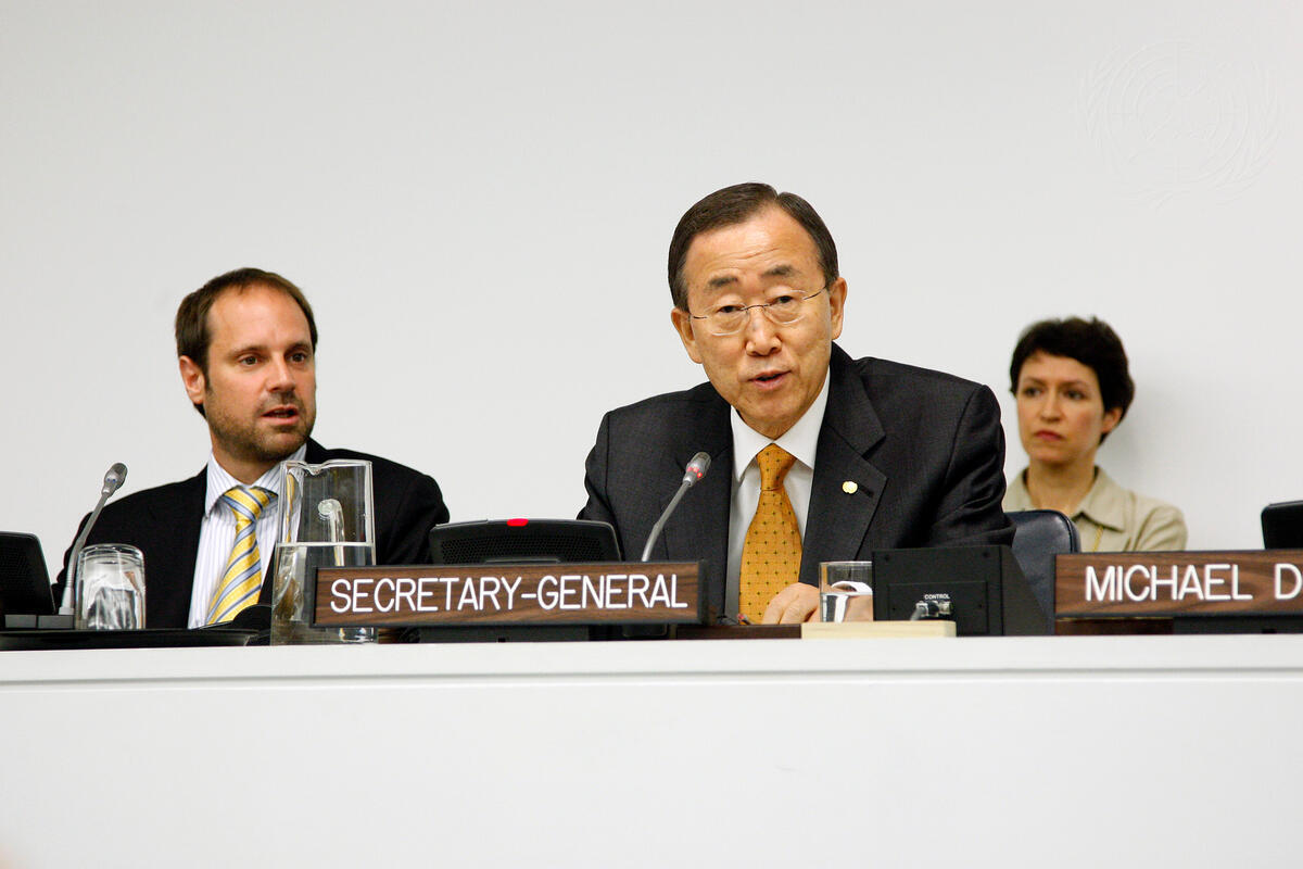 Secretary-General Ban Ki-moon speaks prior to a special screening of ""Countdown to Zero"", a documentary film on the history of the atomic bomb.