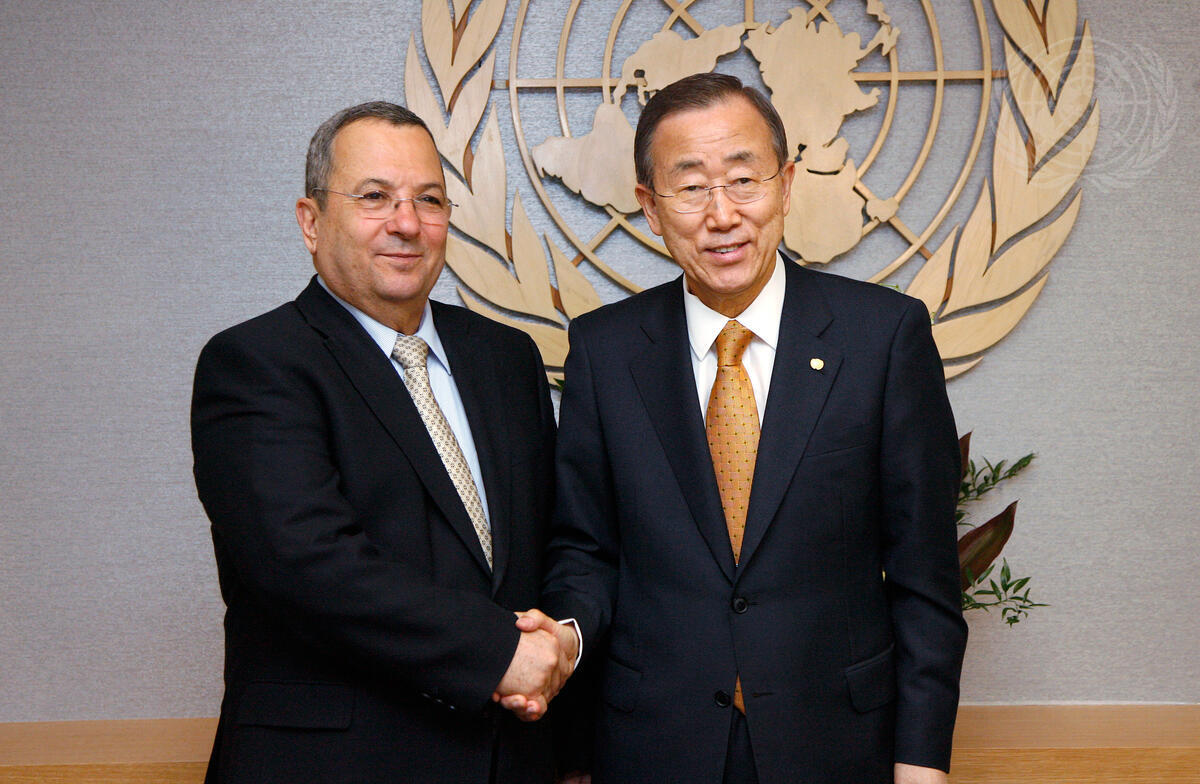 Secretary-General Ban Ki-moon (right) meets with Ehud Barak, Deputy Prime Minister and Minister of Defense of Israel.