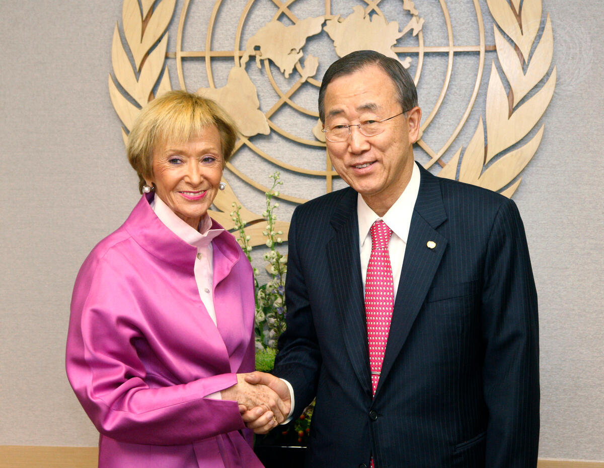 Secretary-General Ban Ki-moon (right) meets with María Teresa Fernández de la Vega, First Vice-President of Spain.