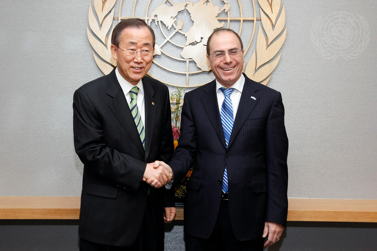 Secretary-General Ban Ki-moon (left) meets with Silvan Shalom, Vice Prime Minister and Minister for Regional Development of Israel.
