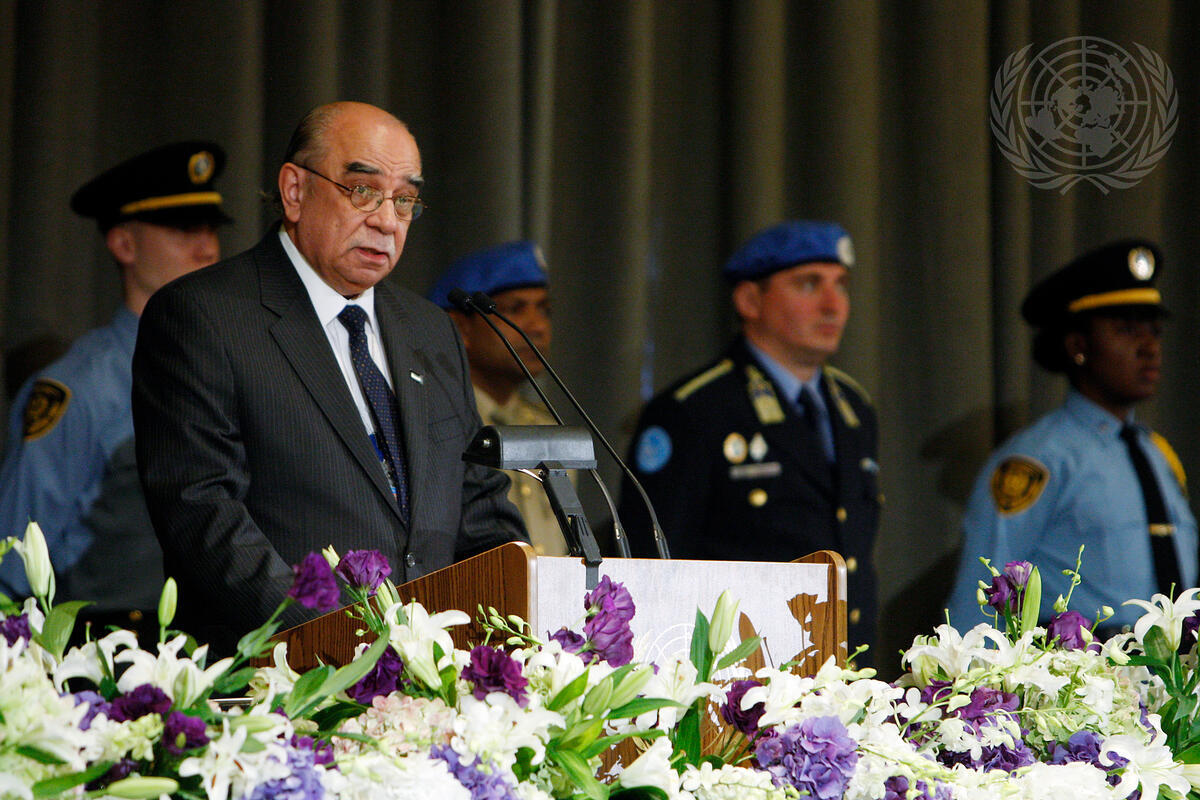 Léo Mérorès, Permanent Representative of Haiti to the United Nations, addresses a memorial ceremony at UN Headquarters in honour of the 101 UN staff members who perished in Haiti's earthquake.