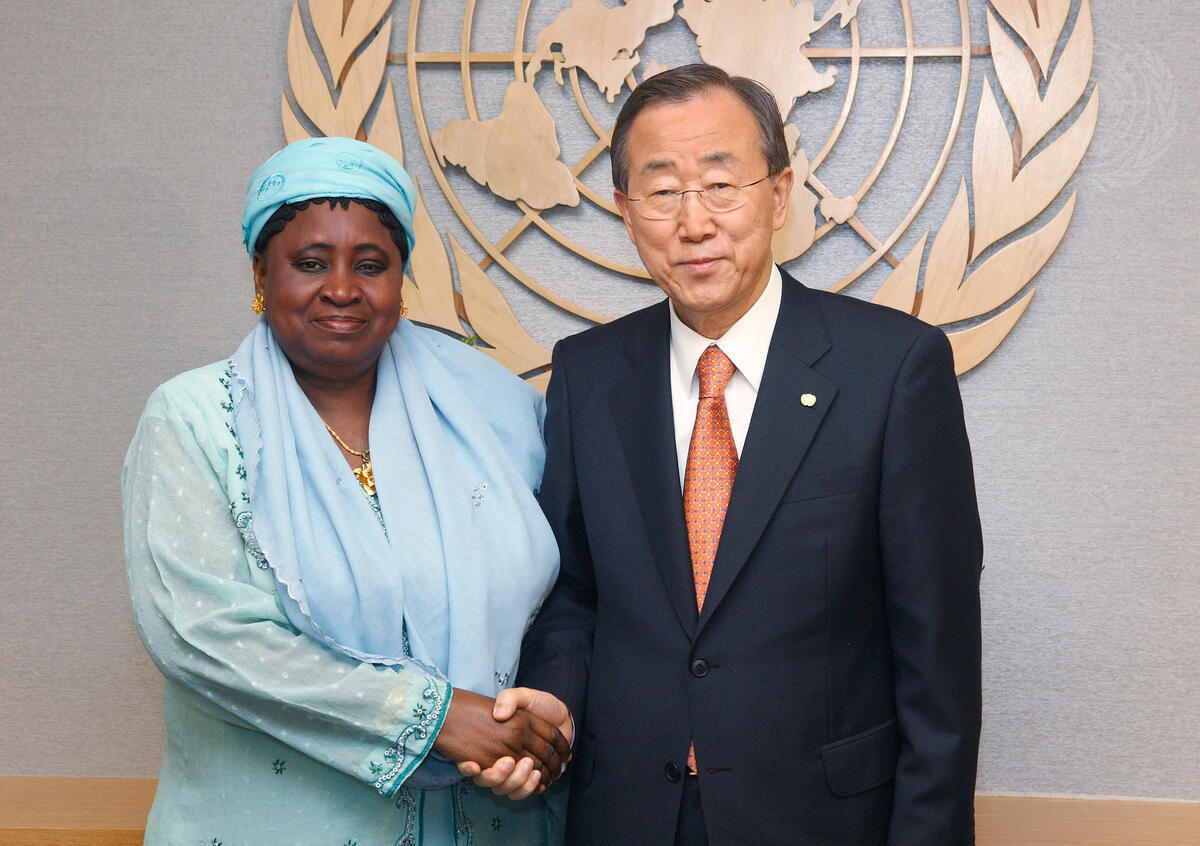 Secretary-General Ban Ki-moon (right) meets with Isatou Njie-Saidy, Vice President and Minister for Women's Affairs of the Gambia.