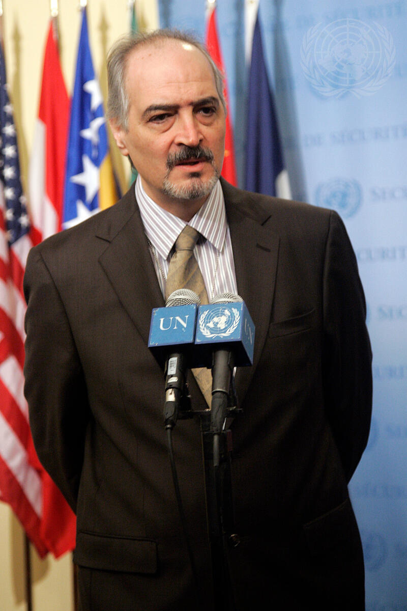 Bashar Ja'afari, Permanent Representative of the Syrian Arab Republic to the United Nations, briefs journalists following Security Council consultations on the Secretary-General's report on the implementation of resolution 1701 (2006), which calls for an end to hostilities between Israel and Lebanon, respect for the ""Blue Line"" (their shared border) and disarming of militias.
