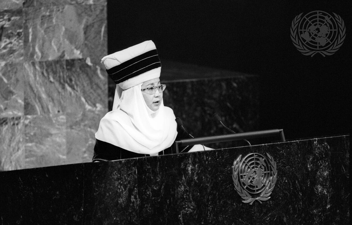 Roza Otunbayeva, Minister for Foreign Affairs of the Kyrgyz Republic, addresses the fiftieth session of the General Assembly.