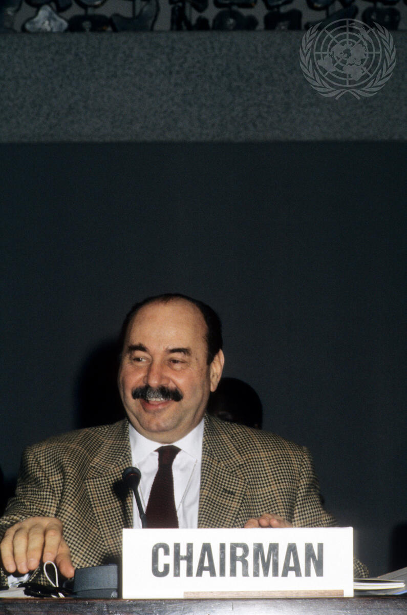 Lengthy negotiating sessions in the Committee of the Whole (COW) led to the Protocol adopted by the Conference. Ambassador Raul Estrada-Oyuela (Argentina), Chairman of COW, at one of the sessions.