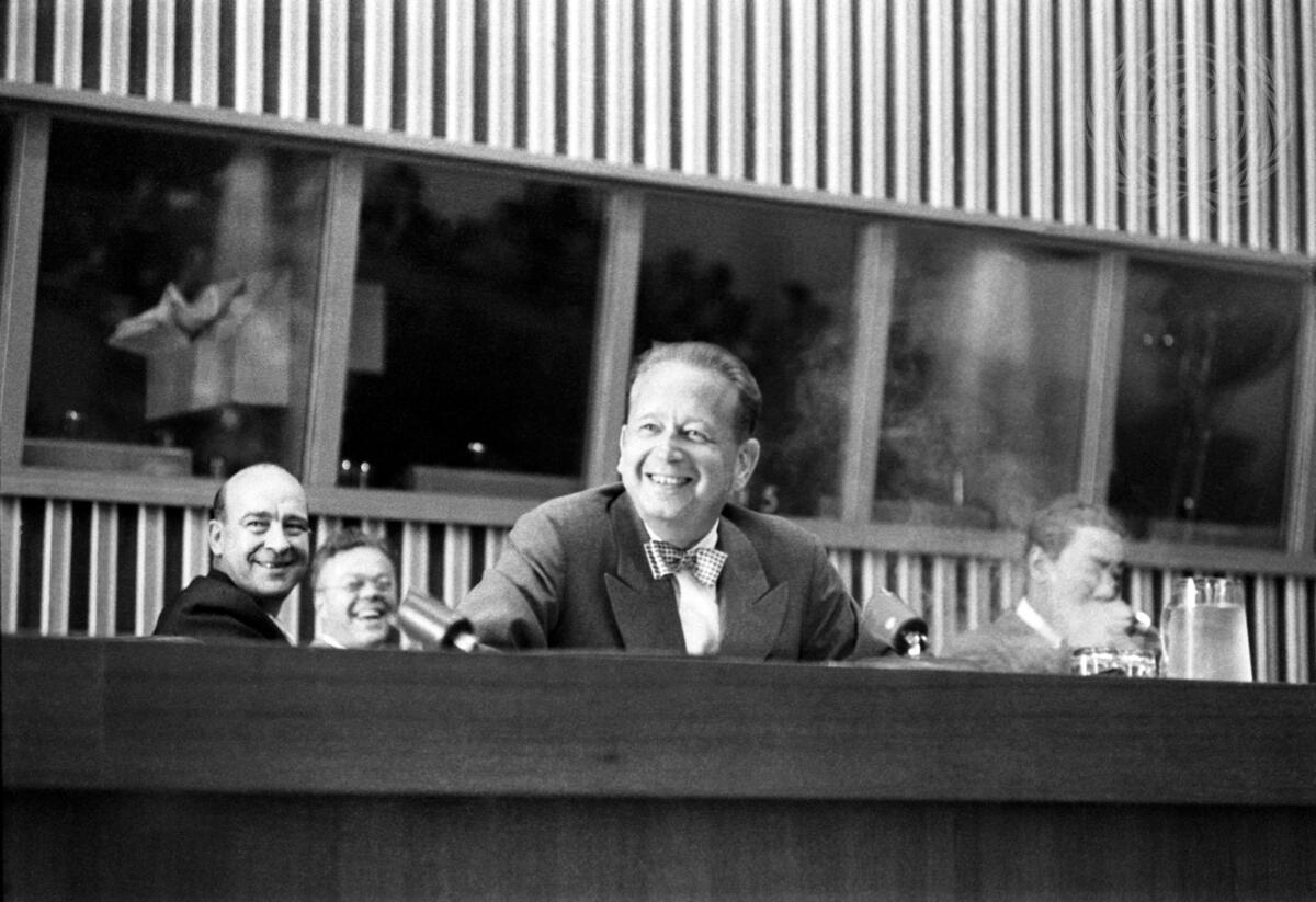 Satisfaction at the Security Council's debate on his mission to the Middle East was expressed today by Secretary-General Dag Hammarskjöld. He told a press conference at UN headquarters: "I think that it could not leave any doubt that the Security Council was behind not only the stand - the result - but also behind the philosophy of the report I put on the table."