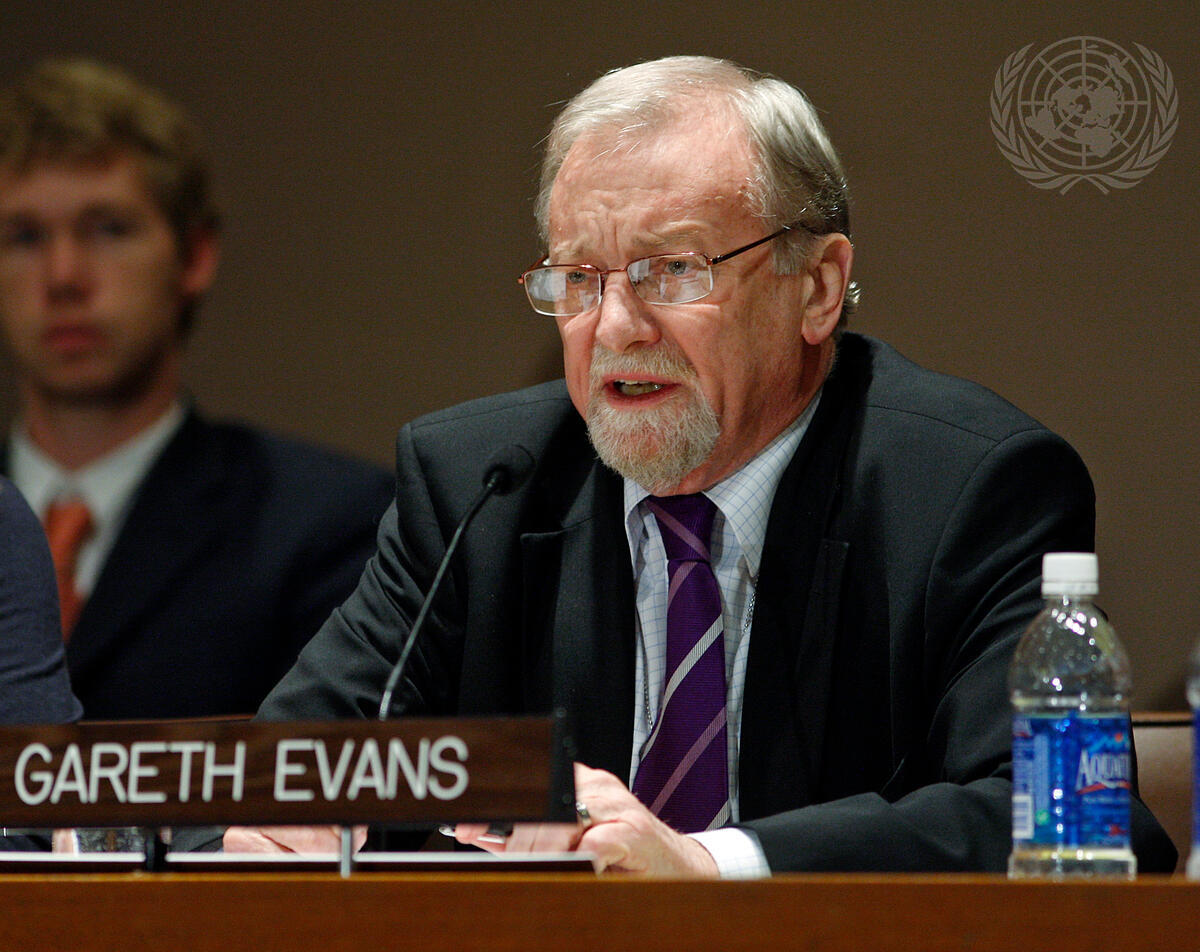 Gareth Evans, Co-Chair of the International Commission on Nuclear Non-proliferation and Disarmament (ICNND), speaks during a panel discussion entitled ""Progressive Initiatives"".