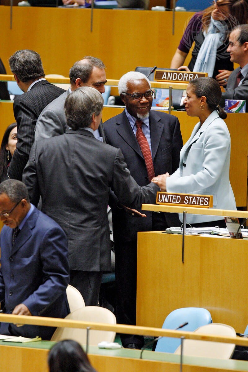 Susan E. Rice (right), Permanent Representative of the United States to the United Nations, is being congratulated by delegates on winning a seat on the Human Rights Council for the first time.
