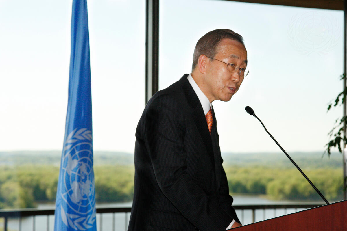 Secretary-General Ban Ki-moon speaks at a reception hosted by Canada's Speaker of the Senate, Noel A. Kinsella, at the Lester B. Pearson Building in Ottawa, Canada.