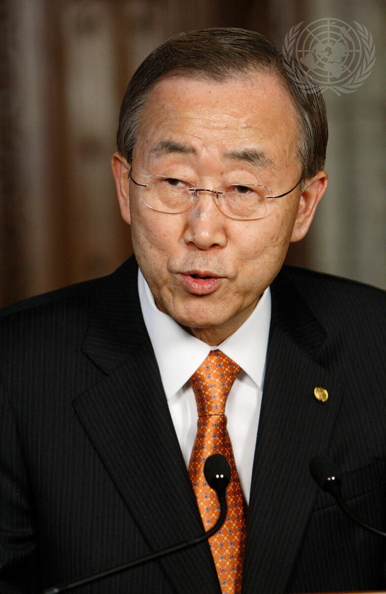 Secretary-General Ban Ki-moon speaks to members of the press following his meeting with Canada's Prime Minister, Stephen Harper, in Ottawa, Canada.