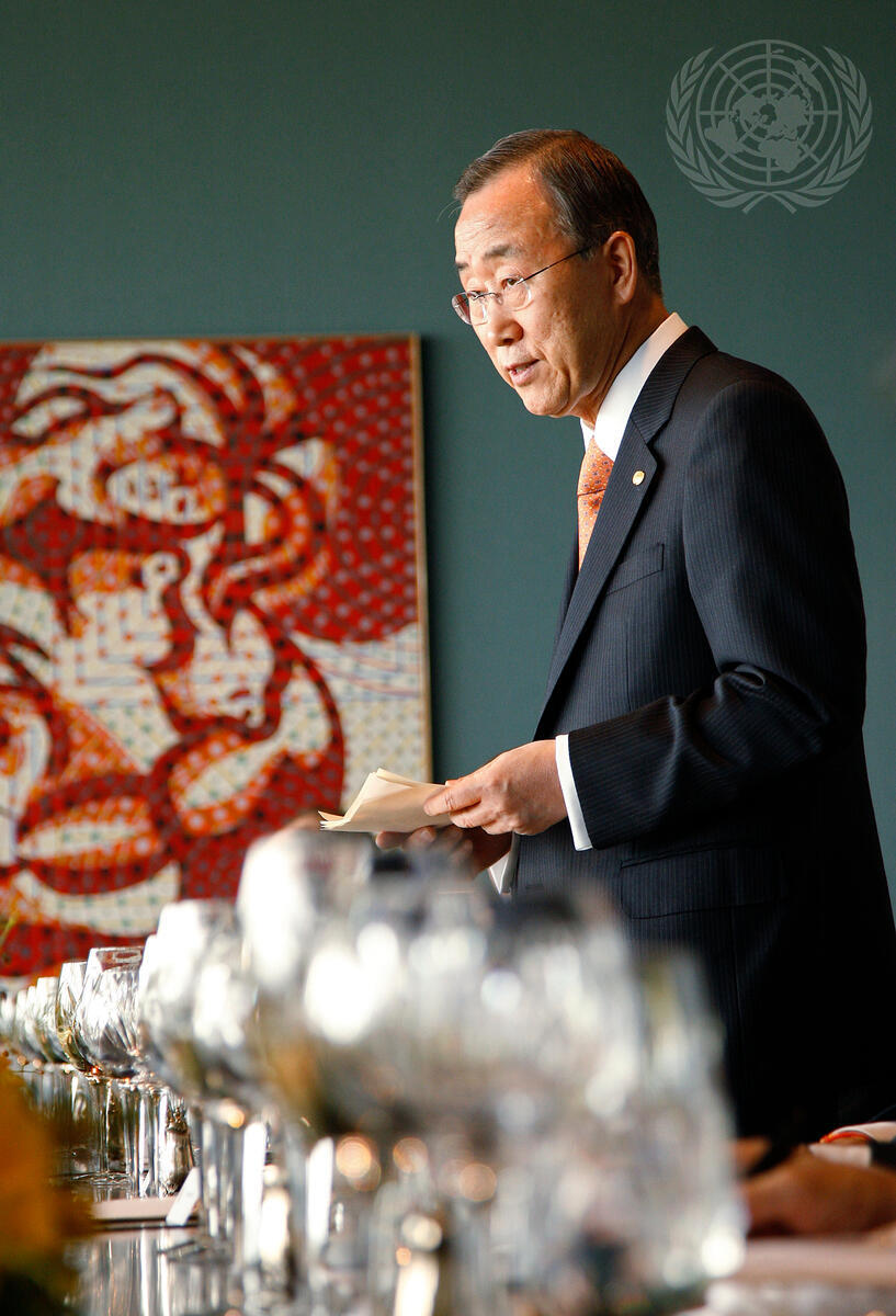 Secretary-General Ban Ki-moon addresses a working luncheon in Ottawa, Canada, hosted by Canada's Ministers of International Cooperation and Finance, Beverley J. Oda and Michael Flaherty.