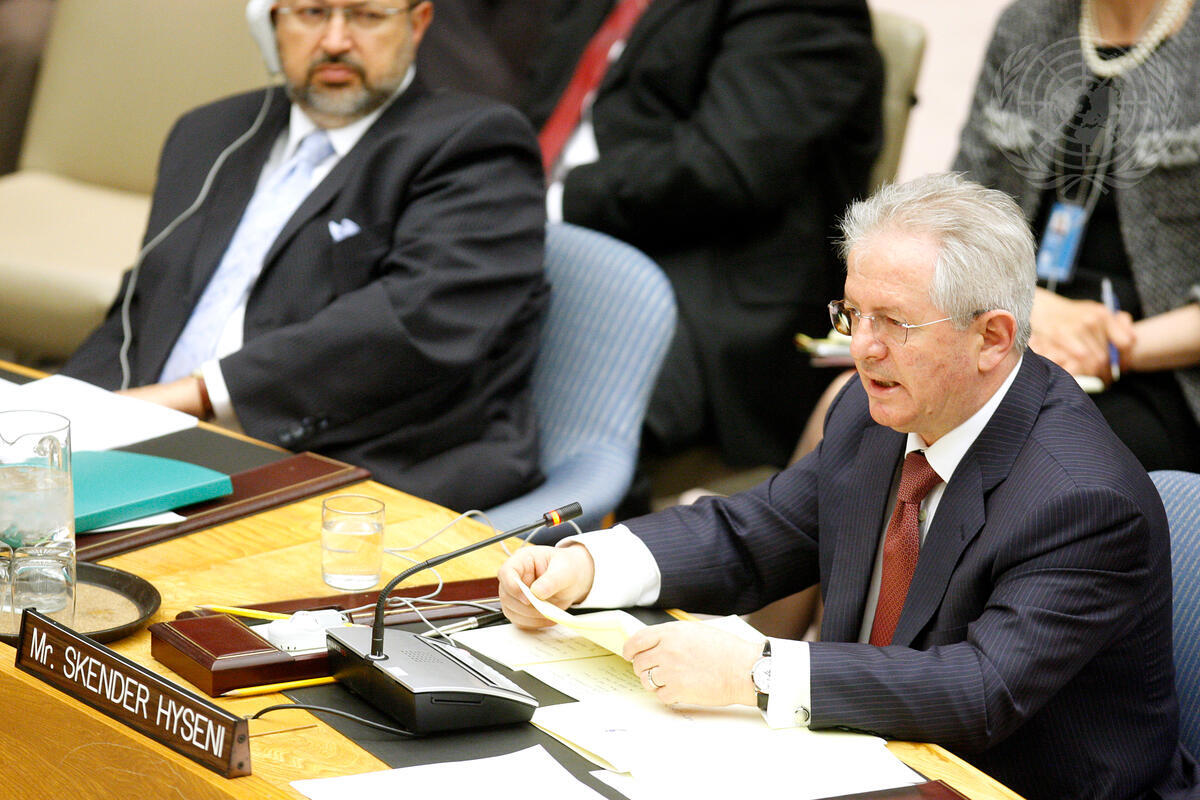 Skënder Hyseni, representative of Kosovo, addresses the Security Council at its meeting on the UN Interim Administration Mission in Kosovo (UNMIK).