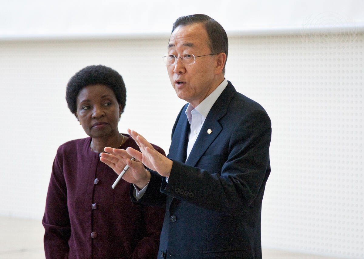 Alongside Deputy Secretary-General Asha-Rose Migiro (left), Secretary-General Ban Ki-moon addresses the UN senior management retreat in Alpbach, Austria.