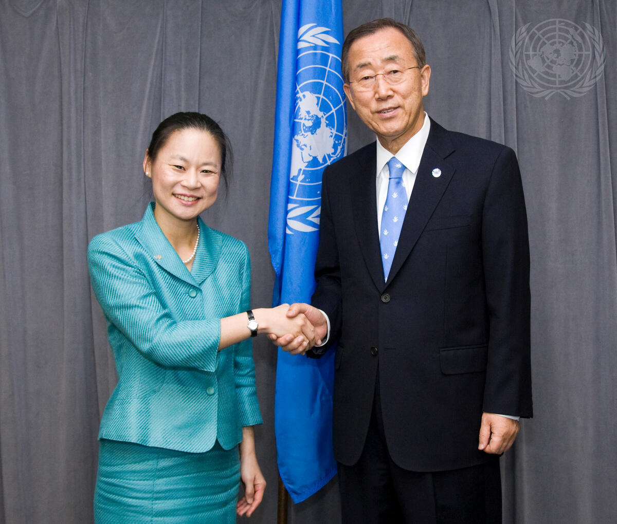 Secretary-General Ban Ki-moon (right) meets with Midori Goto, virtuoso violinist and United Nations Messenger of Peace.
