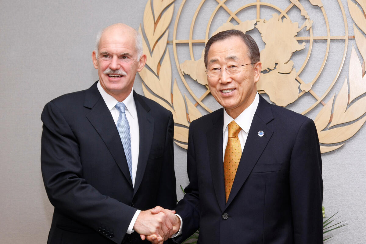 Secretary-General Ban Ki-moon (right) meets with George A. Papandreou, Prime Minister of Greece.