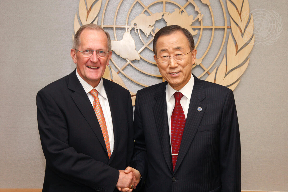 Secretary-General Ban Ki-moon (right) meets with Joseph Deiss, President of the sixty-fifth session of the General Assembly.
