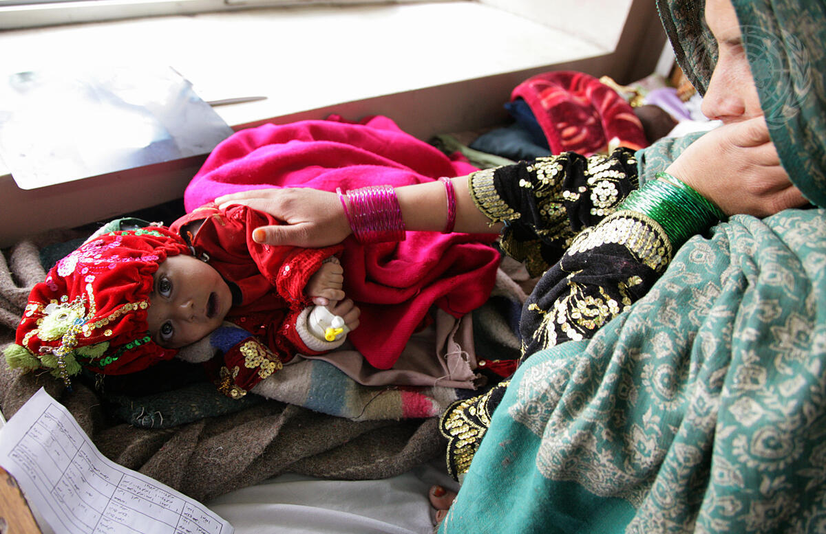 A mother and child, pictured at Indira Gandhi Hospital in Kabul, Afghanistan.