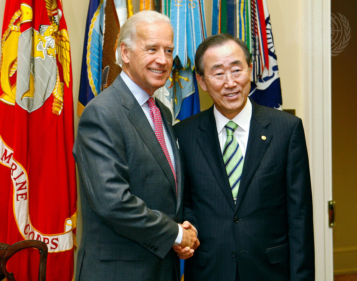 Secretary-General Ban Ki-moon (right) meets with Joe Biden, Vice President of the United States of America.