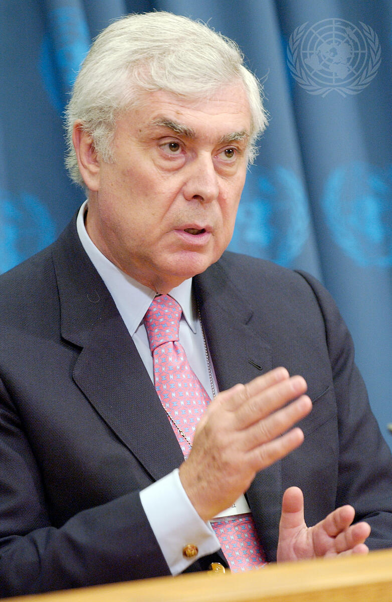 Javier Ruperez, Executive Director of the Counter-Terrorism Executive Directorate, addresses a press conference at headquarters.
