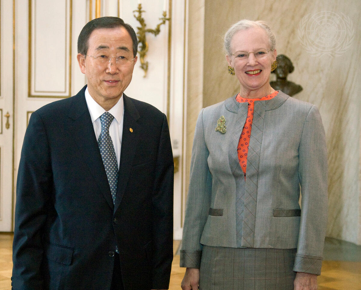 Secretary-General Ban Ki-moon (left) meets with Queen Margrethe II of Denmark.