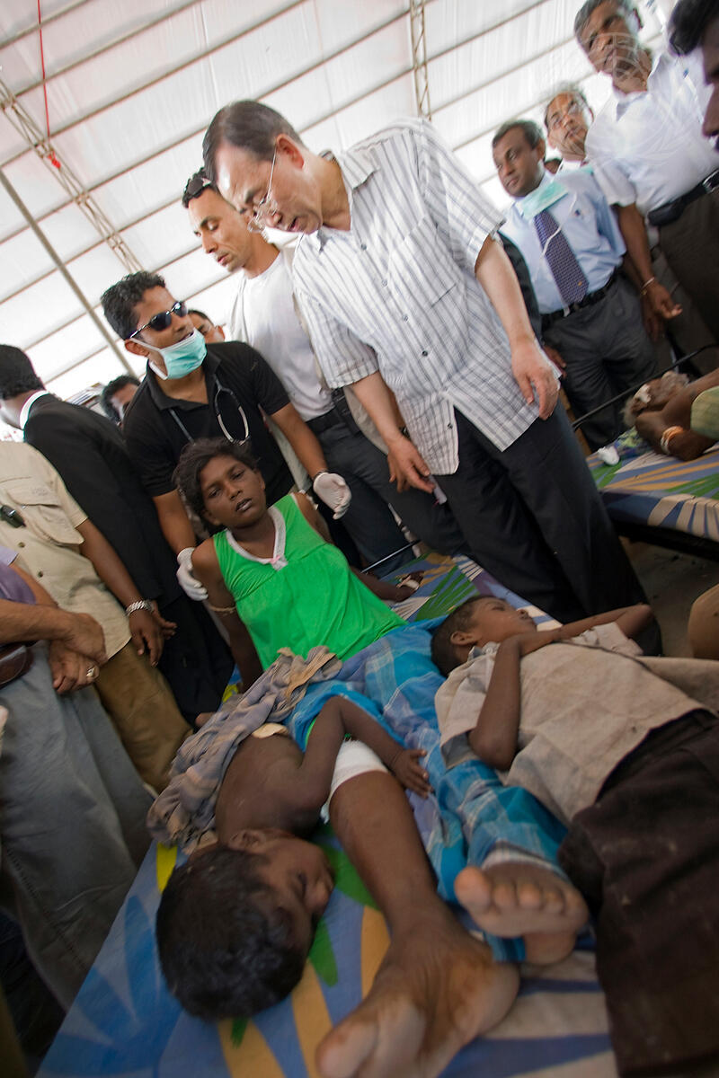 Secretary-General Speaks to Injured Manik Farm IDP Camp Resident