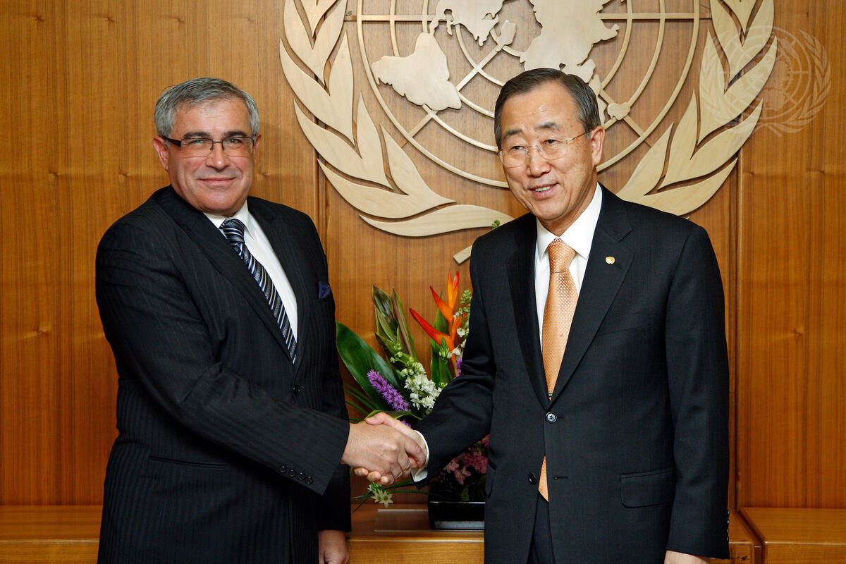 Secretary-General Ban Ki-moon (right) meets with Sven Alkalaj, Minister for Foreign Affairs of Bosnia and Herzegovina.