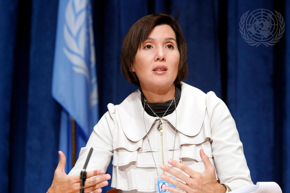 Senator Pia Cayetano of the Philippines, President of the IPU Coordinating Committee of Women Parliamentarians briefs journalists at the press conference by the Inter-Parliamentary Union (IPU) about a new publication entitled ""The World Map of Women in Politics 2010"".
