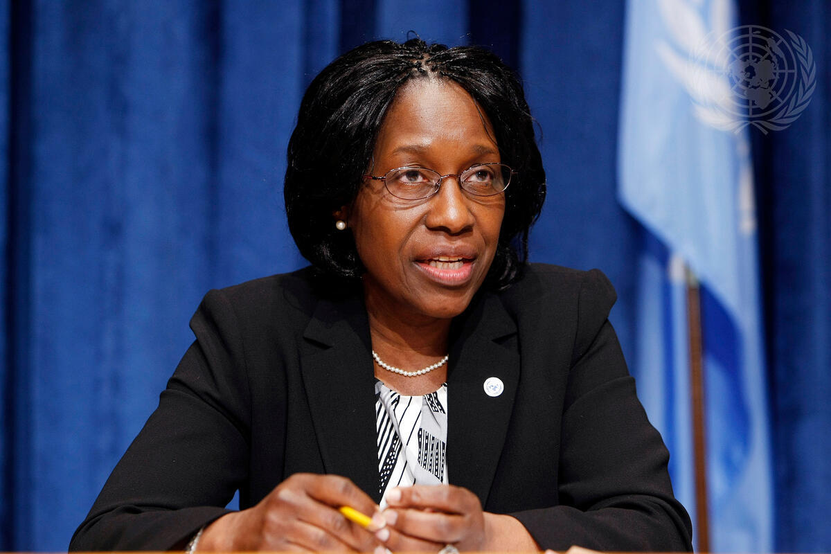 Ms. Rachel Mayanja, Assistan Secretary-General and Special Adviser on Gender Issues and the Advancement of Women briefs journalists at the press conference by the Inter-Parliamentary Union (IPU) about a new publication entitled ""The World Map of Women in Politics 2010"".