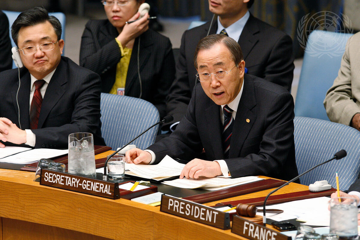 Secretary-General Ban Ki-moon addresses a Security Council meeting on threats to international peace and security.