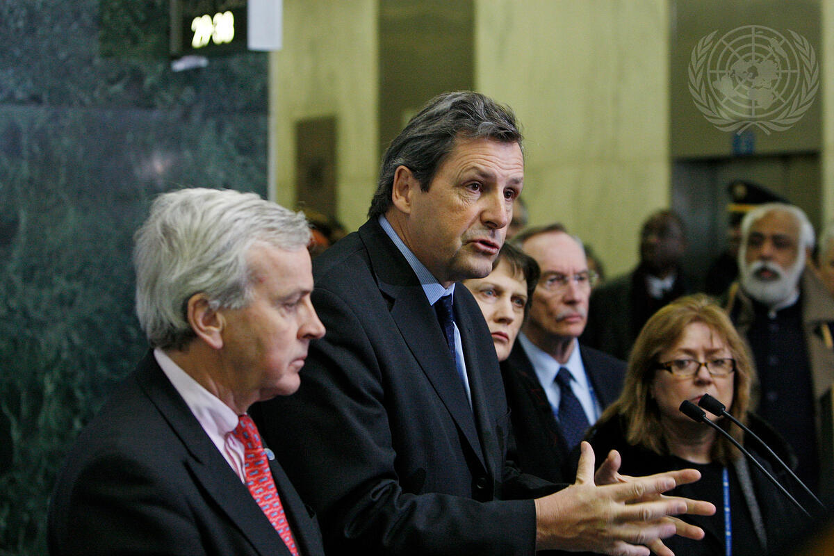 Alain Le Roy, Under-Secretary-General for Peacekeeping Operations, briefs journalists on the situation in Haiti after a devastating earthquake hit the country's capital, Port-au-Prince, on 12 January.