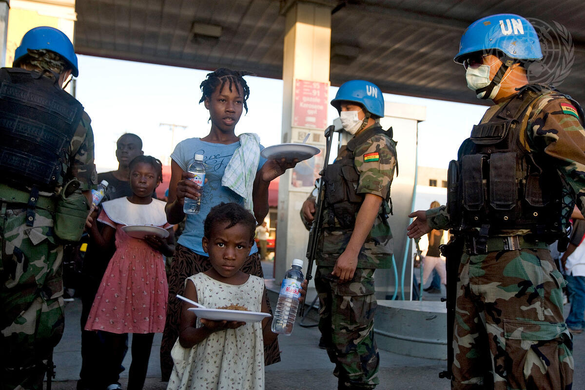 UN Peacekeepers Distribute Water and Food in Haiti