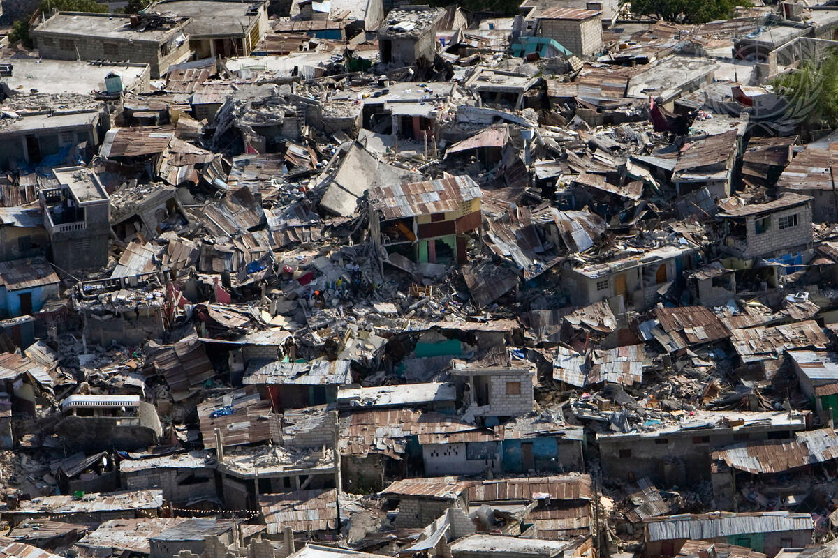An aerial view of an impoverished neighbourhood in Port-au-Prince demonstrates the extent of damage inflicted by the powerful earthquake that rocked the Haitian capital on 12 January.