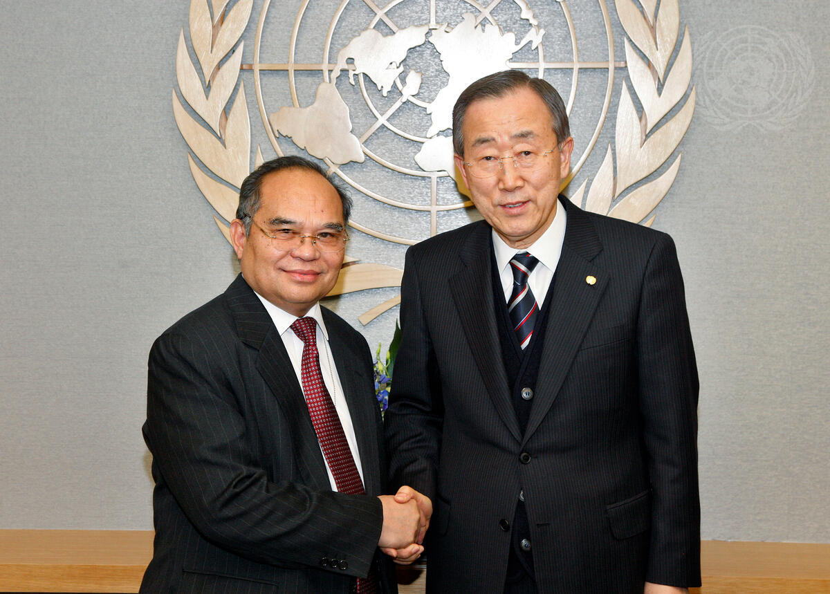 Secretary-General Ban Ki-moon (right) meets with Libran N. Cabactulan, President-Elect of the 2010 Review Conference of the Parties to the Treaty on the Non-Proliferation of Nuclear Weapons (NPT).